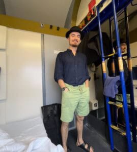 Auf dem Bild sieht man mich im Nachtzug zu einer Konferenz in Prishtina 🙂